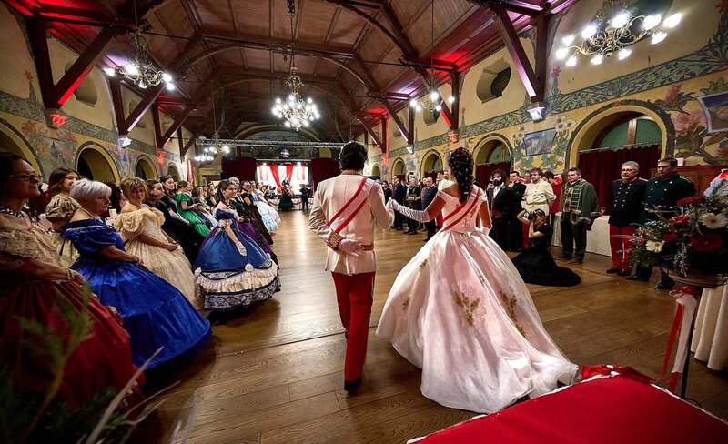 Traditioneller Ball in historischen Kostümen im märchenhaften „Salone Hofer” aus dem 19. Jahrhundert im Hotel Relais Des Alpes. Umtrunk und Stehbuffet mit vielen Köstlichkeiten, inspiriert von der österreichischen Kaiserhofküche. Eröffnung des Tanzabends durch das Kaiserpaar und Fortsetzung mit dem umfangreichen Repertoire des Orchesters mit Live-Musik zu den Klängen der Wiener Walzer. Einbeziehung des Publikums in die Tänze mit einigen einfachen und unterhaltsamen Choreografien der Tanzgruppe. Eine Zeitreise zwischen Eleganz, Musik und traumhafter Atmosphäre am Fuße der Dolomiten.