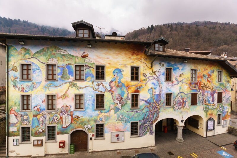 Von 1894 bis 2009 prägte der Bergbau das lokale Leben und begleitete den Übergang von einer bäuerlichen Gemeinschaft zu einer industriellen Realität. Um ihr Andenken zu bewahren, startete die Pro Loco di Darzo 2005 ein Projekt zur Sanierung des Dorfes und gab drei große Fresken an ebenso vielen Gebäuden in Auftrag, die als Etappen einer erzählerischen Route gedacht waren.