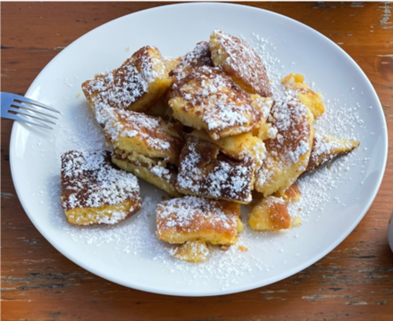 In der Trivena-Hütte angekommen, erwartet Sie ein heißes Getränk, aber das eigentliche Herzstück des Erlebnisses beginnt erst jetzt: Sie stellen sich an den Herd, um Kaiserschmarrn, das berühmte Dessert des Kaisers, zuzubereiten! Fluffig, karamellisiert, duftend: Es wird eine Herausforderung für Naschkatzen oder einfach ein unterhaltsamer Moment, den man gemeinsam genießen kann.