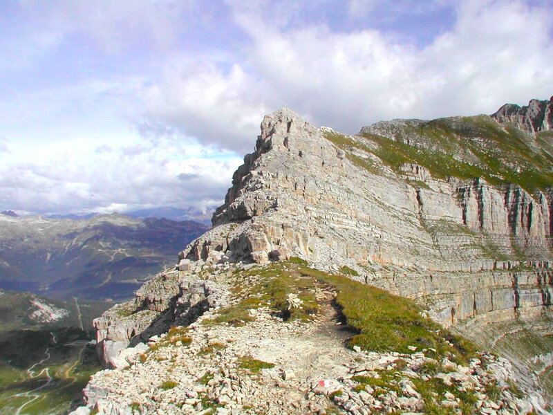 Leichter Klettersteig, der sich auch für Familien eignen kann und oft für eine erste Tour auf Klettersteigen empfohlen wird. Er verläuft über die schönen Felsbänder der Westwand der Pietra Grande (2.937 m) über eine interessante, nicht zu stark frequentierte Route, die auf einigen Abschnitten exponiert, aber insgesamt einfach ist.