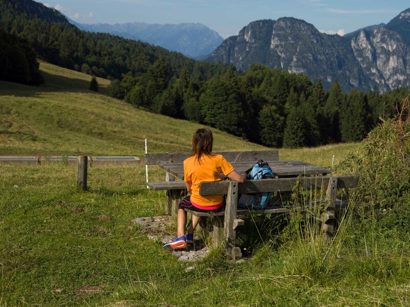 Schöne Route von Alpo zur Cima Tombea hinauf, von wo aus man einen 360-Grad-Panoramablick auf die Ledrensi-Alpen genießen kann, die Teil des UNESCO-Biosphärenreservats „Alpi Ledrensi & Judicaria“ sind.