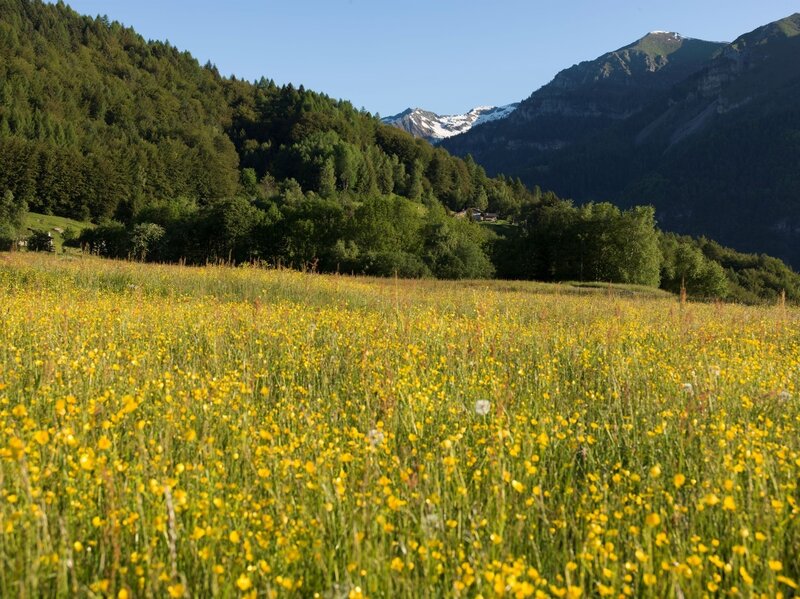 Wunderbare Aussicht von den Almen der Malga Baite. Bitte vorsichtig sein und die Elektrozäune zur Abgrenzung der Weideflächen nicht berühren.