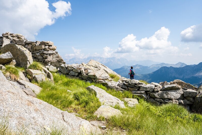 Der Weg ins Tal beginnt an einer Weggabelung entlang des bekannten Wasserfallwegs des Val Genova. Der untere Teil der Route führt durch den Tannenwald vorbei an Malga Cioc und Malga Folgorida, beide geschlossen. Mit stetigem Anstieg quert er grasbewachsene Hänge, verlässt die Vegetation und führt weiter über Felsen und einen wunderschönen Kriegspfad, dessen Spuren in Trockenmauern und Funden am Passo delle Topette noch erkennbar sind.