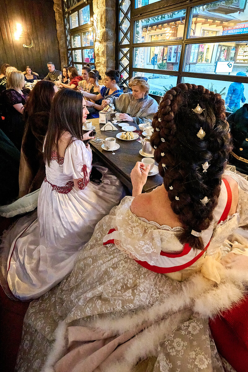 The rate includes: period costume rental, a mini-conference (in Italian), a guided tour of the Hofer Hall, and a tea tasting with pastries.