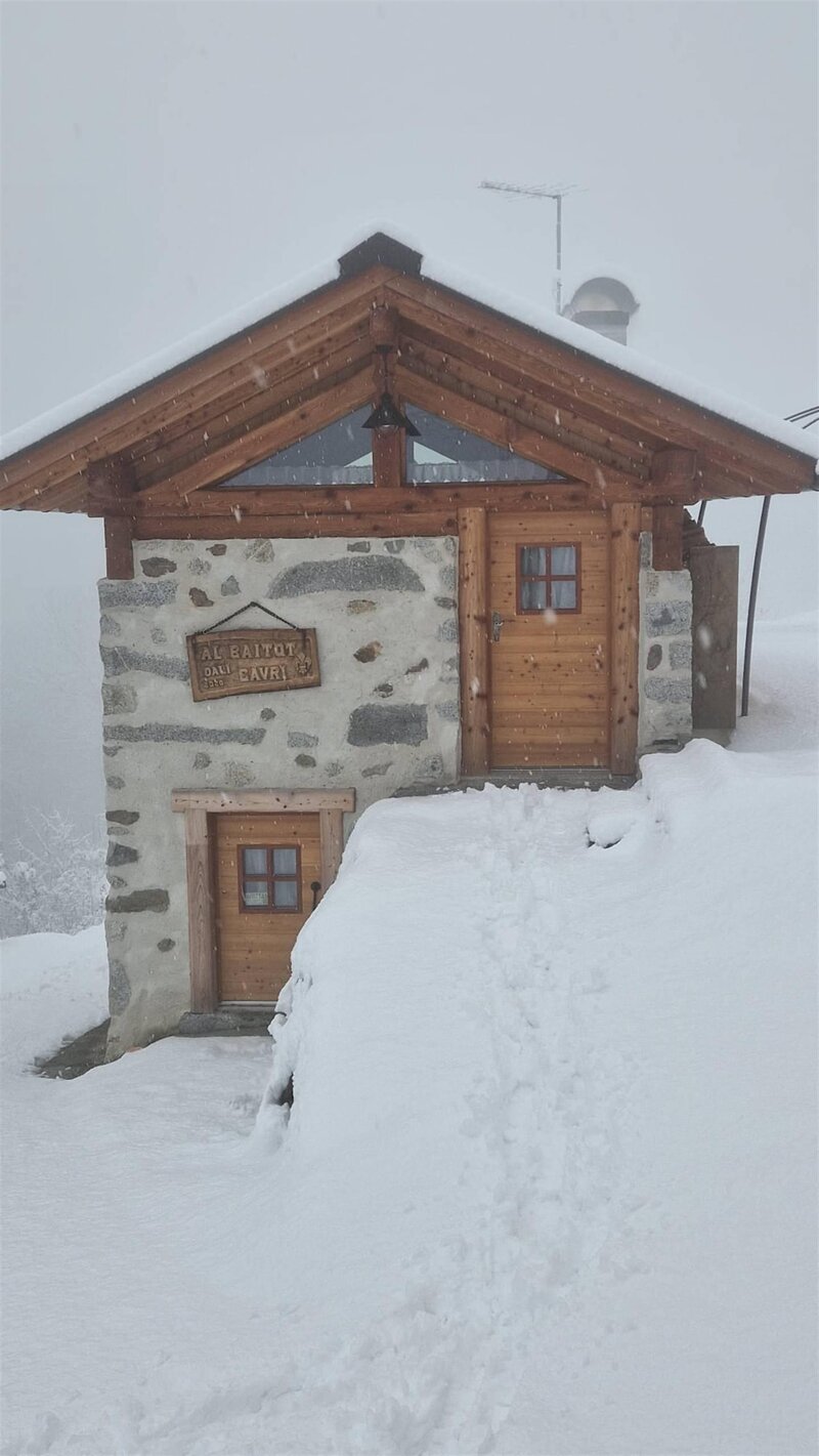 The chalet of about 50 square metres in total is on two floors and can accomodate up to 4 people. The main entrance leads to the living area (dominated by wood as the main furnishing and construction material) where there is a large table and the kitchen equipped with a gas cooker, fridge, dishwasher and the typical wood-burning stove.