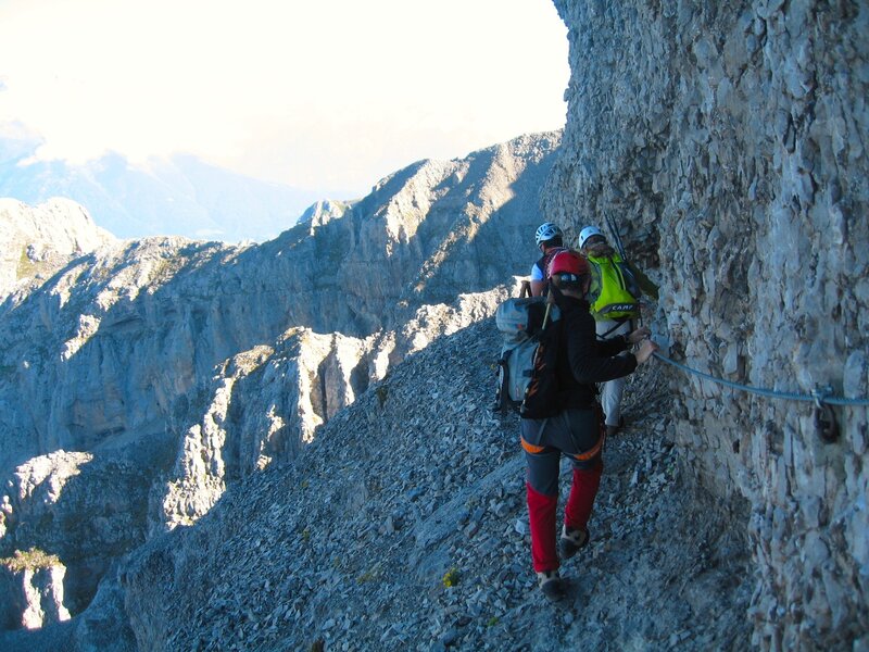 Long and difficult via ferrata in the northern part of the Brenta Group, the lesser known, stretching about 12 km. A small alpine trekking only partly equipped along fascinating rocky peaks, ledges, and narrow ridges.