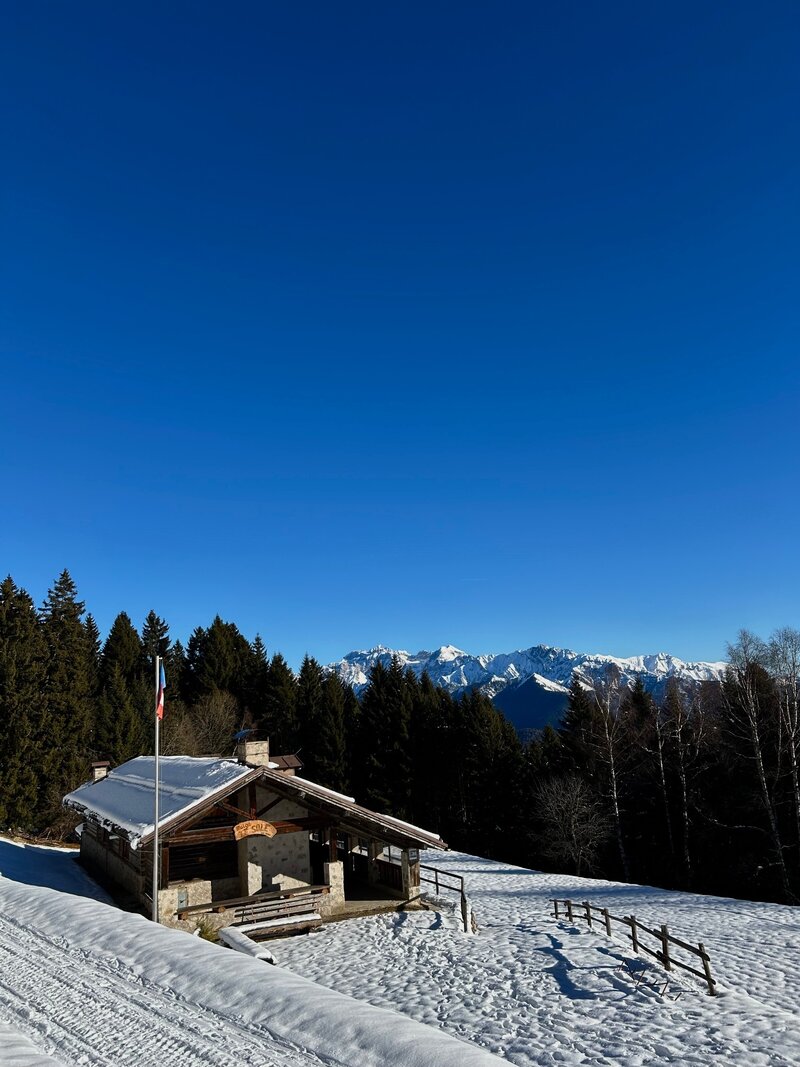 The route is mainly flat or with slight slopes, unfolding over sections of forest path and segments of snow-covered and lightly uneven forest road. Walkable on foot with crampons or snowshoes.