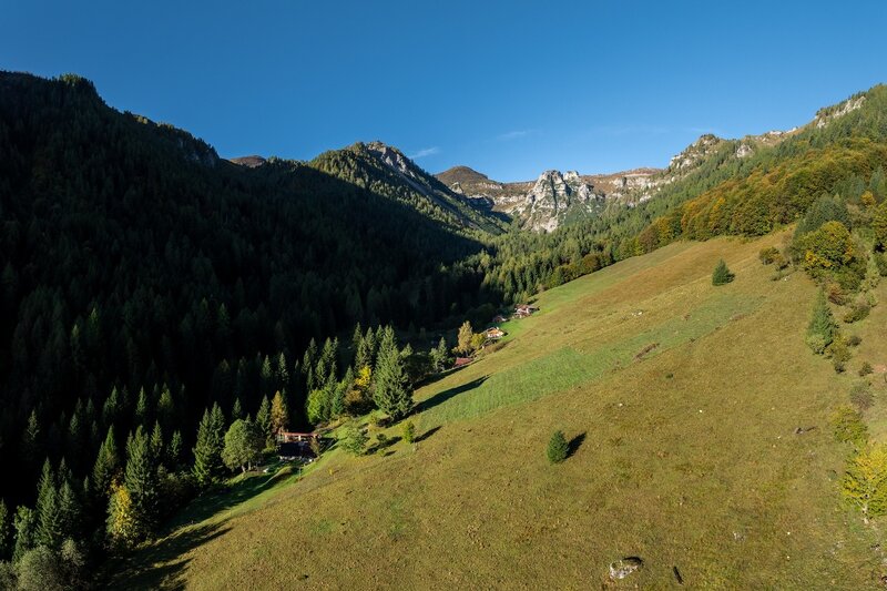 The itinerary starts from the village of Bondone di Sopra, where you can see the last huts of the valley, once used as barns to store the fodder needed to feed the animals during the winter months. The route begins to climb, crossing the pastures of Spazade and Fraìn, surrounded by fir and larch woods, and continues along the side of the fascinating spire of Cingol dal Sal until it reaches Malga Stabol Fess. Take a short break to enjoy this natural amphitheatre dotted with rhododendrons, which turn red during the short flowering period between the end of June and the beginning of July, and then... off you go again! For a final effort that leads to the crest where Sentiero della Pace (Path of Peace) is intercepted. From here the path becomes an easy up and down to Dosso dei Morti, the highest point of the route, with an all-round panoramic view over the surrounding landscape. A second short break at Dosso dei Morti (“Hump of the Dead”, a sad toponym given to this hill during the First World War), to refresh yourself and prepare for the long descent that leads to Malga Avalìna, where you can buy genuine and natural dairy products during the mountain pasture season. From the alpine hut, you can reach the starting point by proceeding on an old comfortable road with a gentle slope, built by the Austro-Hungarian army at the beginning of the 20th century.