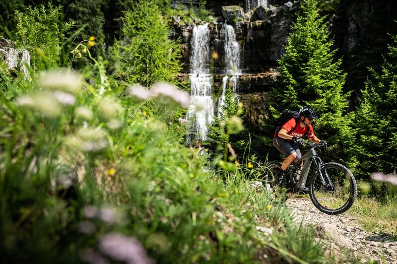 Ideal route to take with family on a mountain bike or one of the many e-bikes available for rent in the town of Madonna di Campiglio.