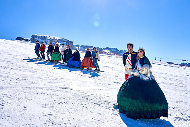 La tariffa include: noleggio abito d'epoca per la sciata, aperi-pranzo e sciata di gruppo con la principessa Sissi.