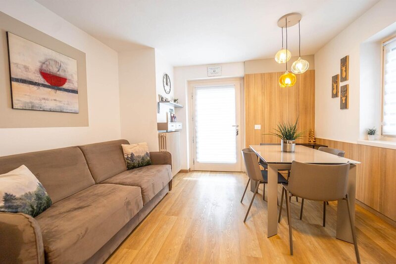 Dotato di una entrata indipendente e di un giardino privato, potrai goderti il sole e respirare l'aria fresca delle Dolomiti. Con due camere da letto e una cucina, potrai sentirti a casa anche lontano da casa, mentre il WiFi gratuito ti manterrà connesso con il mondo. Ricaricati dopo una giornata di escursioni e attività in montagna, oppure rilassati davanti alla TV.