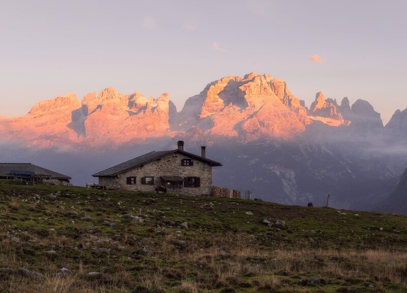 Itinerario semplice, adatto alle famiglie, attraverso il bosco fino Malga Ritort, incredibile punto panoramico sulle Dolomiti di Brenta.