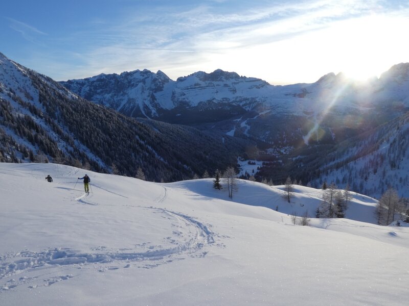 Bella escursione con le pelli che dal lago Nambino conduce, lungo un itinerario vario e panoramico, alla cima di Monte Serodoli passando per due laghi alpini.