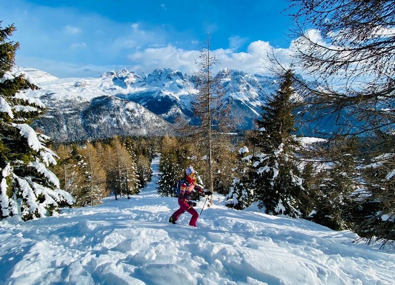 Escursione panoramica, percorribile con racchette da neve o sci d'alpinismo, che partendo da località Patascoss conduce al rifugio Baita Natalia ai Cinque Laghi.