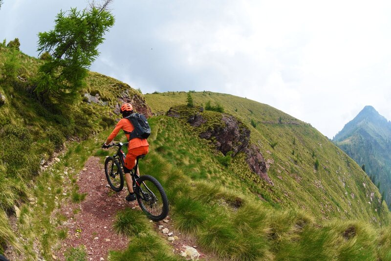 Cima Maresse, con i suoi 2101 m, non è certo una cima particolarmente tra le più notevoli dell’Adamello meridionale, eppure offre una vista spettacolare su Valle Aperta che si estende fino a Valle del Chiese. Il Tour delle Maresse, con oltre 47 chilometri e quasi 2100 metri di dislivello, non è certo un percorso per principianti, ma piuttosto per atleti allenati ‒ sia dal punto di vista fisico che dal punto di vista tecnico. Sono infatti i vecchi sentieri militari su Sella di Bondolo e Bocca di Bosco a mettere alla prova chi vi si cimenta. E anche in sella ad una eMTB si ha assolutamente bisogno di una batteria di riserva. Certo, chi decide di salire a Malga Table in auto può risparmiarsi ben 1100 metri di dislivello. In ogni caso, questo tour rimane un percorso impegnativo dal punto di vista tecnico.